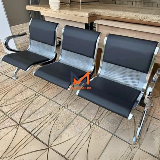 Banquette de réception 4 places chromé en cuir Réf. A0343