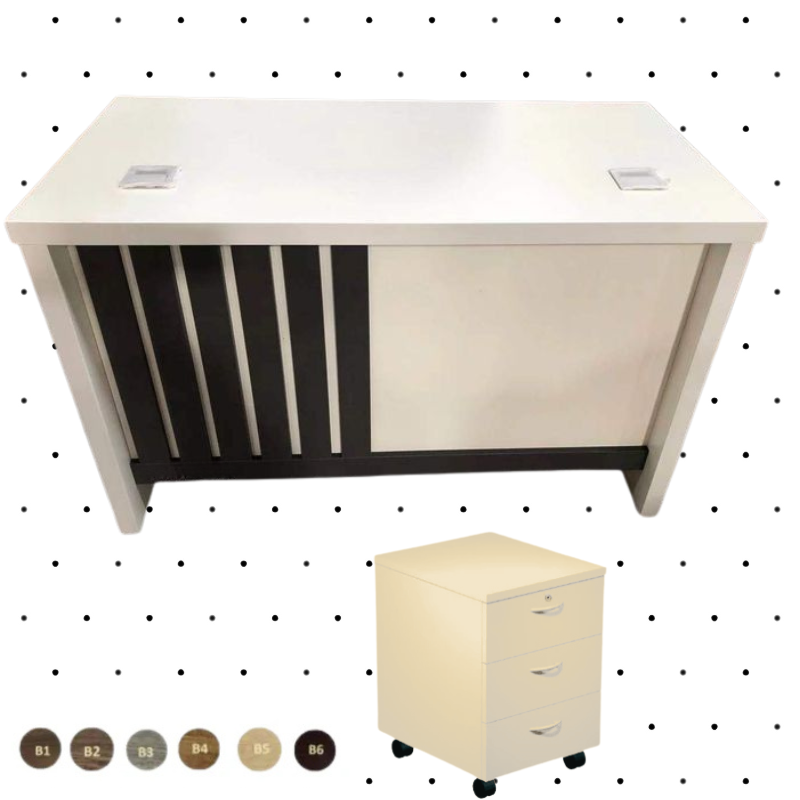Profondeur 80 cm hauteur 75 cm 1 voile d’épaisseur 19 mm Le bureau est réalisé en panneaux de particules épaisseur 19 mm Tous les chants visibles sont bordés d’un PVC de 0,8 mm d’épaisseur