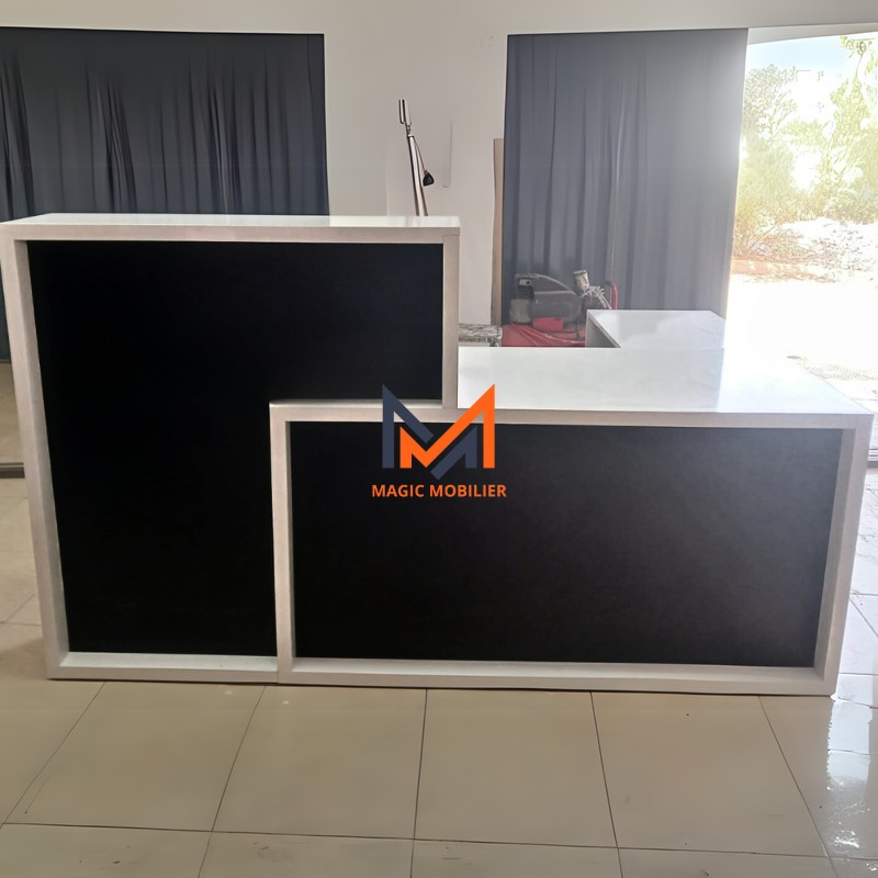 COMPTOIR DE RECEPTION EN BOIS AVEC RETOUR ET CAISSON Réf.A0812