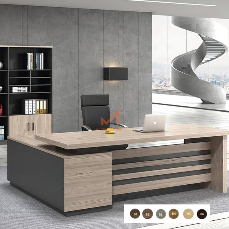 Bureau de direction en bois avec retour posé sur Caisson Fixe.
