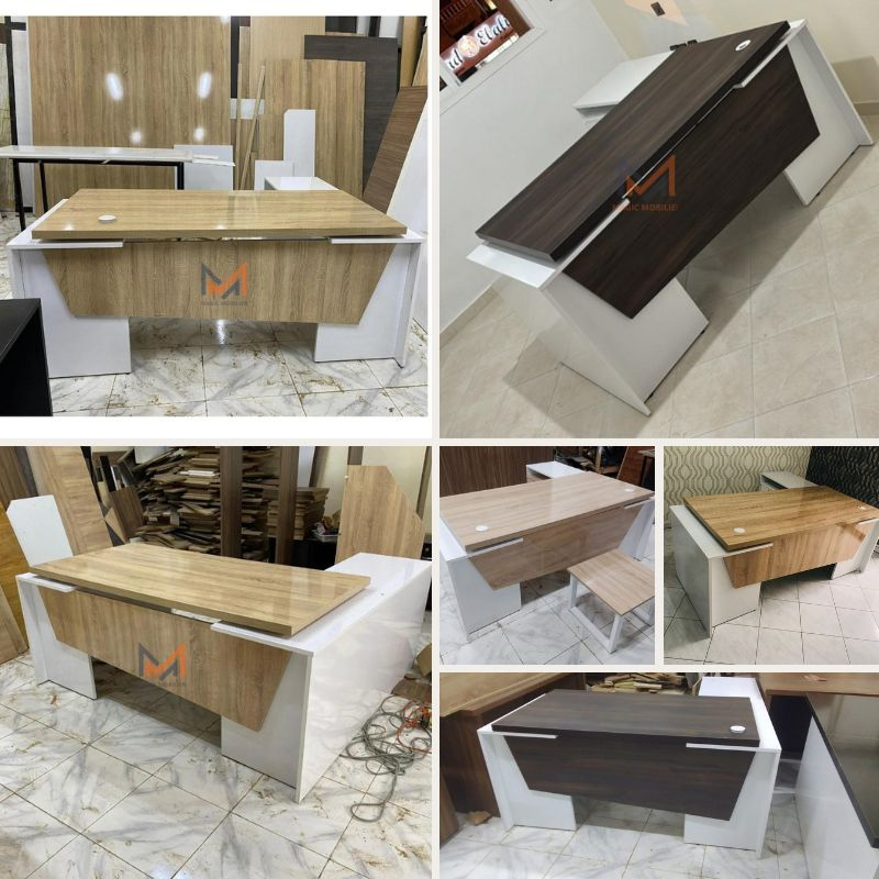 Bureau de direction en bois mélaminé avec retour Fixe et caisson mobile 3 tiroirs