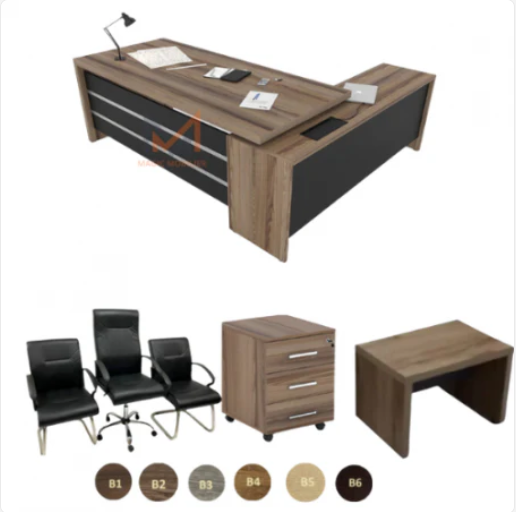 ENSEMBLE BUREAU VOLGO Avec retour + caisson + chaises + table basse Réf. A0240